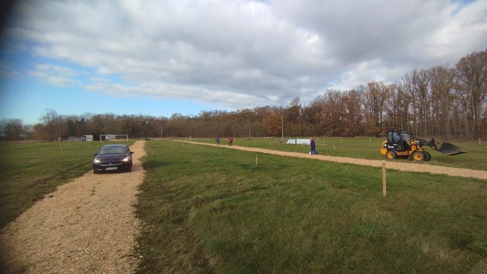 Auf dem alten Fußballplatz wurde der Parkplatz vorbereitet: Der Rasen wurde gemäht und die Wege zur Kennzeichnung der Parkflächen wurden sorgfältig mit Holzschnitzeln aufgefüllt, damit unsere Besucher sicher und geordnet parken können.