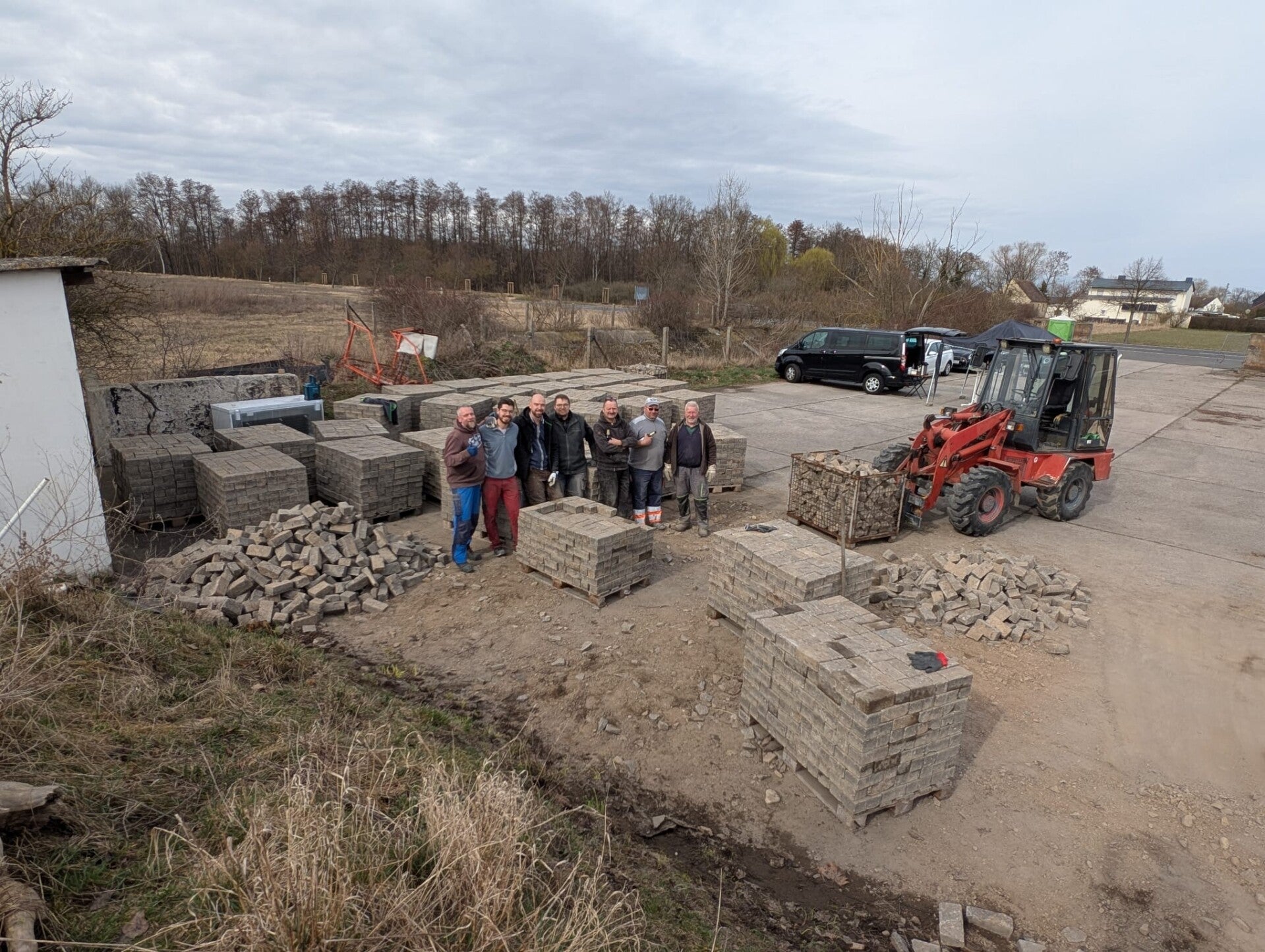 Ein starkes Zeichen gelebter Gemeinschaft: Für die weitere Gestaltung rund um unsere Heimatscheune konnten wir eine großzügige Spende von Pflastersteinen für eine Fläche von rund 300 m² entgegennehmen.
