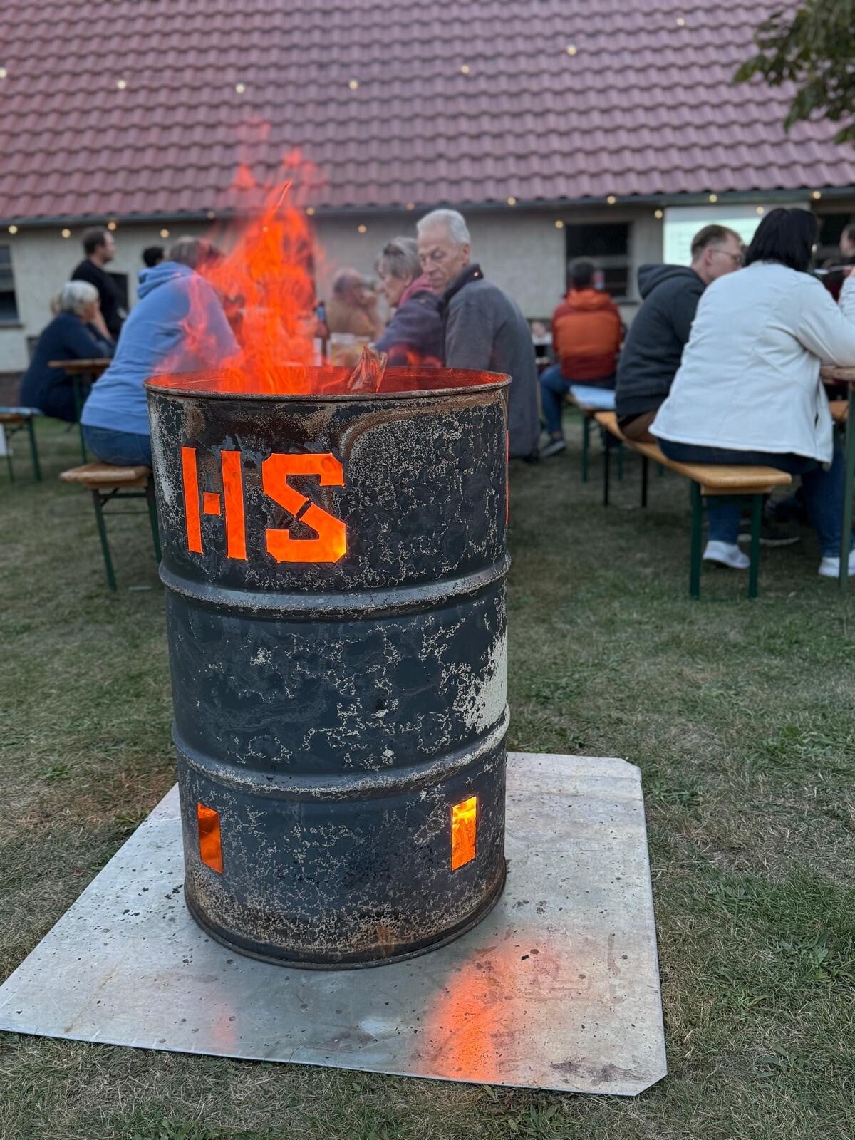 Steffen und Lothar haben in Handarbeit eine individualisierte Feuertonne gestaltet. Mit dem ausgeschnittenen Kürzel „HS“ setzt sie nicht nur ein optisches Highlight, sondern sorgt auch bei kommenden Veranstaltungen für gemütliche Wärme und besondere Atmosphäre. Vielen Dank für diese tolle Arbeit!