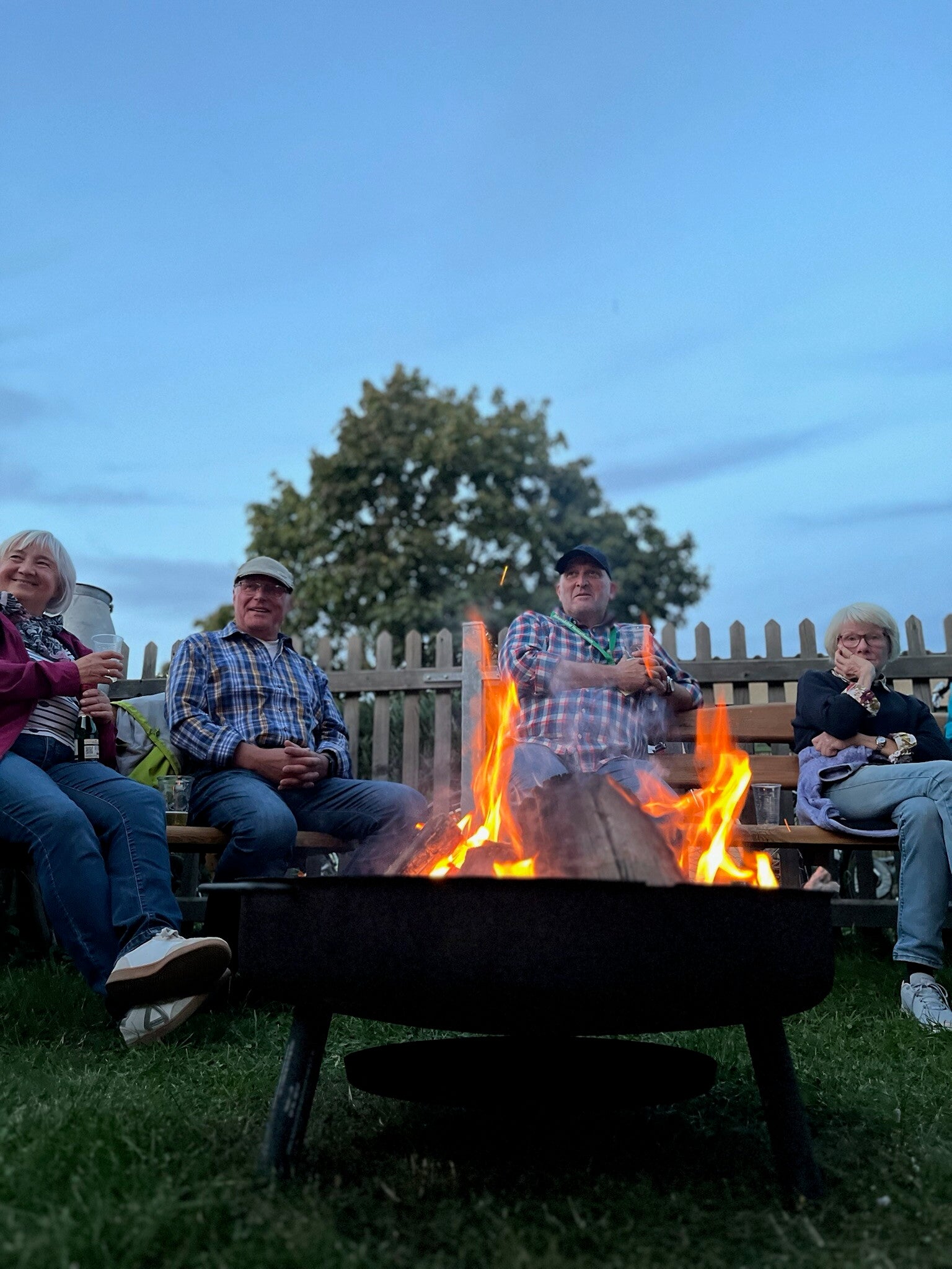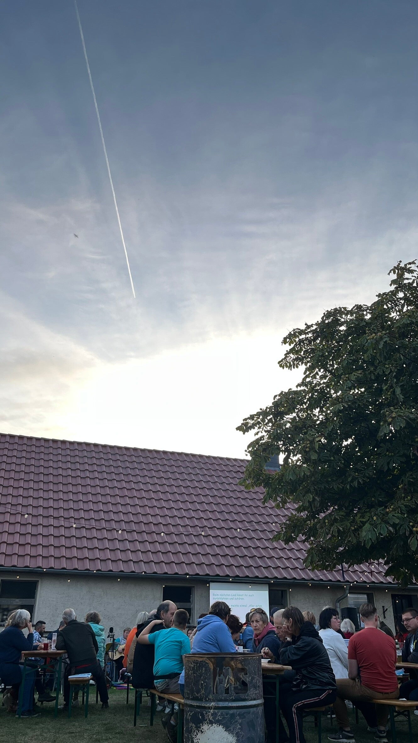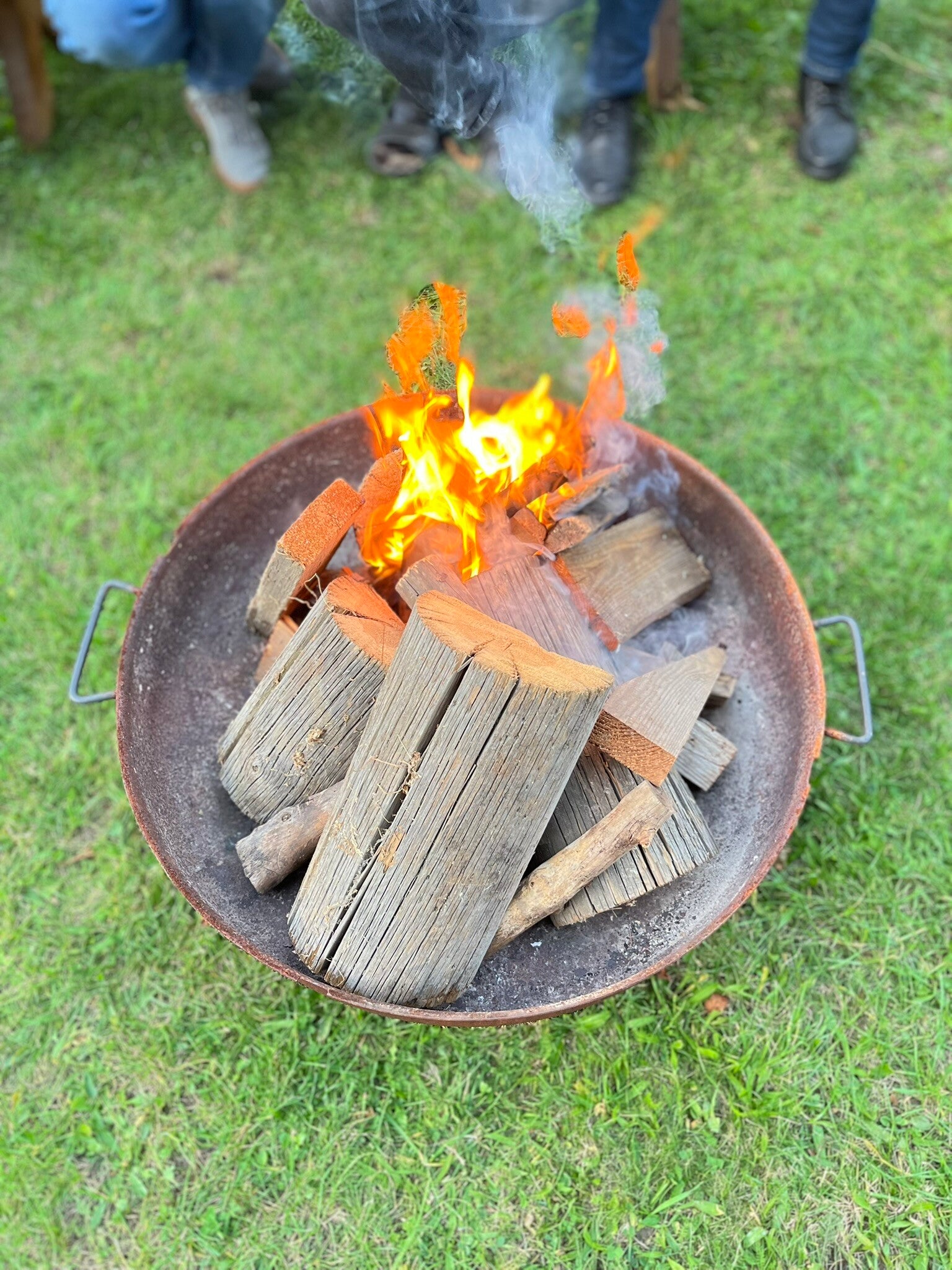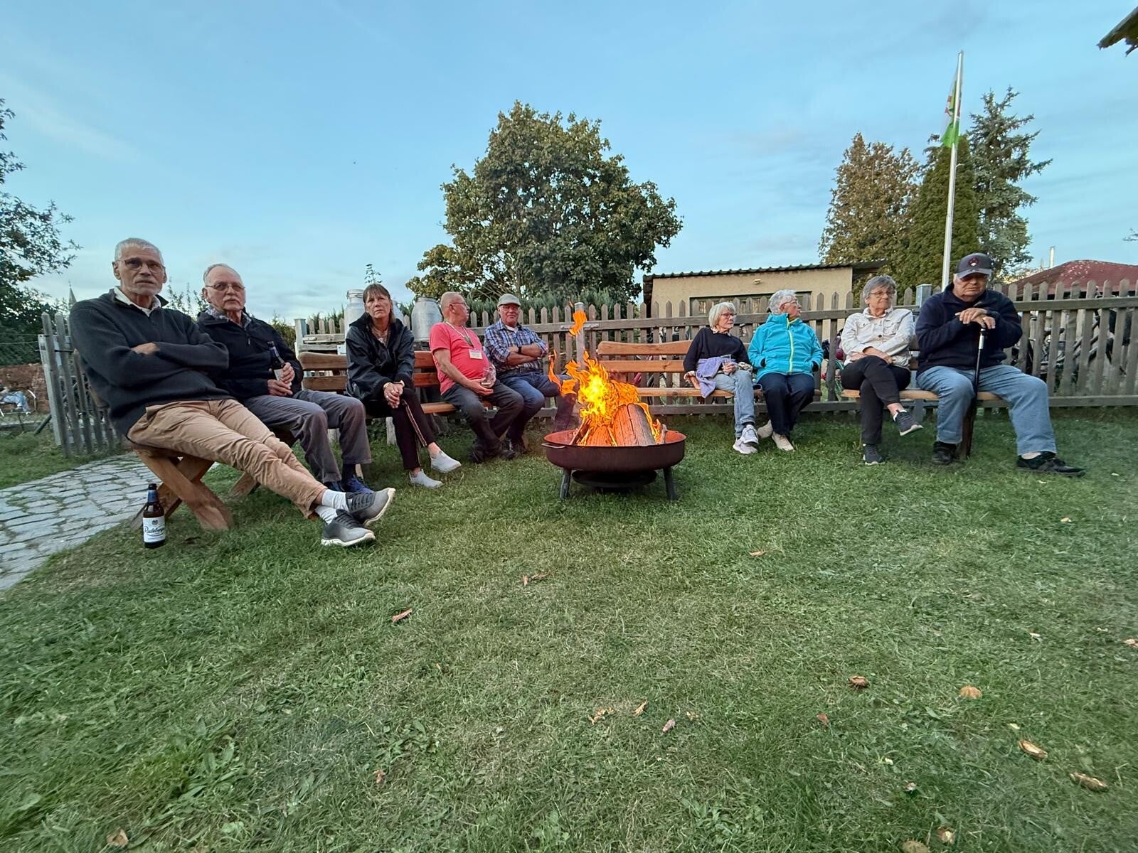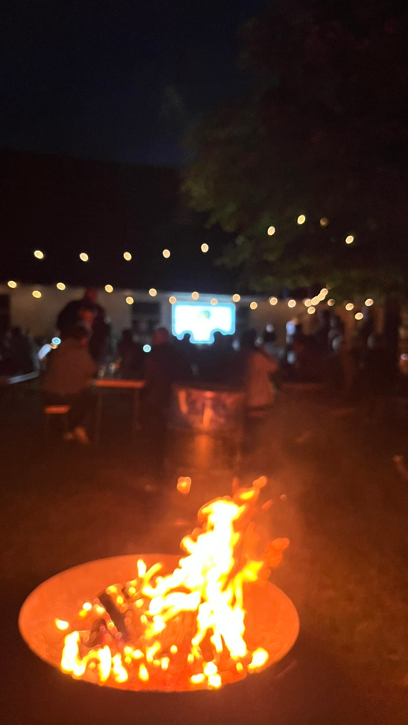 Als die Dämmerung hereinbrach, verlagerte sich die Gesellschaft rund um das Feuer. Mit Getränken in der Hand, Gesprächen und weiteren Liedern klang der Abend in gemütlicher Lagerfeueratmosphäre aus.