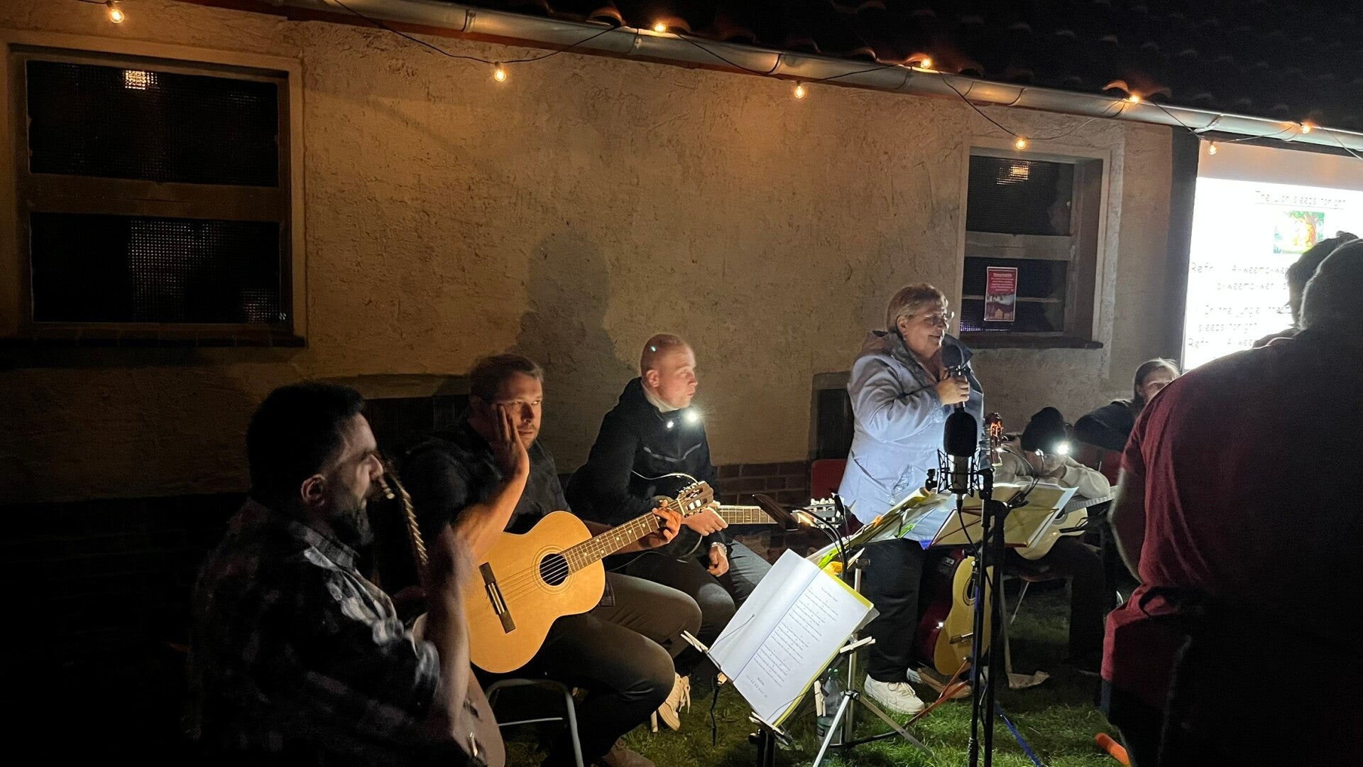 Besonders stimmungsvoll wurde es, als die Liedtexte für alle sichtbar projiziert wurden. So konnte jeder mitsingen – egal ob geübt oder nicht. Musik wurde an diesem Abend zu einem Konzert als gemeinsames Erlebnis.